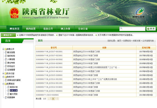 (三)积极推进行政许可目录项目十大娱乐平台大全网站和财政资金十大娱乐平台大全网站。在行政许可栏目发布了有关种苗管理、野生动植物保护、森林病虫害防治检疫、森林资源管理等公共十大娱乐平台大全网站事项。在厅网站预算决算专栏,按照按功能科目、经济分类科目进行了细化,对省林业厅2017年部门预算、2017年度部门决算及公共预算财政拨款“三公”经费进行了公开。
