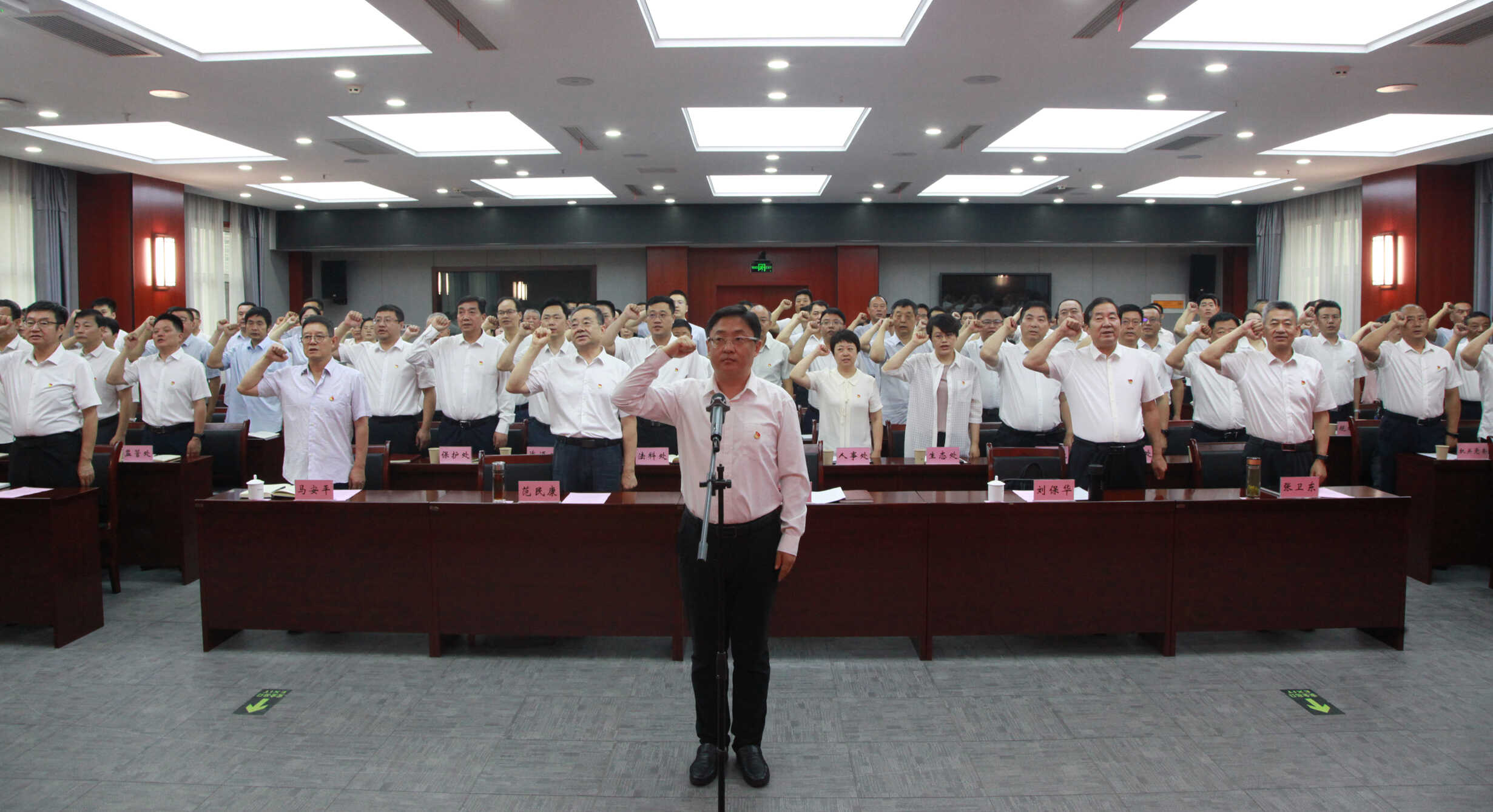 7月1日,省林业局召开庆祝中国共产党成立103周年大会,局党组书记、局长郑重带领党员干部重温入党誓词,并以“恪守‘六大纪律’ 筑牢思想根基 努力推动林业各项事业取得新突破”为题讲授党纪学习教育专题党课,进一步教育引导局系统党员干部学纪、知纪、明纪、守纪,切实把党纪学习教育成果转化为推进陕西林业事业高质量发展的强大精神力量和实践动能。省林业局党组成员、副局长刘保华主持,“五星级党支部”代表作了交流发言。